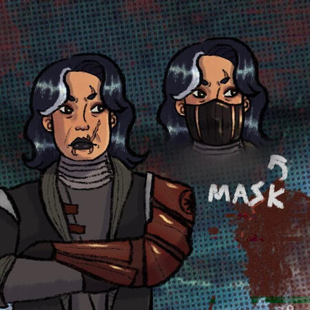 Vivian and Rosemary were sent to vault 111 where they were put to sleep for around 200 years. After a malfunction in the tanks both of them were released and were the only survivors. Immediately after exiting the vault they were treated by institute personnel and recruited for their athletic experience and scientific knowledge. Rosemary worked as a scientist, working on cures for ghoulification, new synth prototypes, and more. However rosemary tests for a cure for gholification in an unethical way. She tests on non feral ghouls, who are aware enough to feel the pain and beg for death. This doesn’t stop her though, she continues to request that Vivian brings her more test subjects and Vivian does just that. Vivian was sent out as a human courser. She brings back or destroys synths who have been deemed too dangerous or have escaped other synth coursers. While she’s out she kidnaps ghouls for Rosemary. During a mission Vivian kills Glory, unknowingly. This creates a domino effect which ends in rosemary dead. Before rosemary’s death her and Vivian get kidnapped by rust. They were very close to being tortured but Vivian broke out her restraints within the first minute of gaining consciousness. After Rosemary's death, vivian became known as the red viper, the most dangerous institute agent and the biggest threat to the railroad. She became silent and resentful, drowning in her grief and the stress of Insitute work. She has a hatred for Rust fueled by the death of her beloved wife and promises she will get revenge when she gets her hands on Rust.Rust grew up in the railroad with their moms: the leader of the railroad, Desdemona, and her synth wife, Glory. Rust and their family fight to get freedom for trapped synths and help them live normal lives among humans, by any means necessary. Rust doesn't have a good relationship with their birth mom Desdemona and since Glory's death, their relationship is strained. After Glorys death the Railroad pulled off their biggest heist ever. After months of hard work, Rust, Desdemona, and Hancock, along with all the Railroad members (other than Tinker Tom and Deacon who stayed above ground) shot through the Institute in a cloud of bullets and lasers. vivian defended the Institute to the best of her ability but Rosemary was shot and killed when trying to help other scientists to safety. In a blind rage, Vivian shot anything in her path and ended up shooting her own arm which paralyzed it in the process. Vivian’s arm was replaced with a high-tech synth arm later on. The Railroad fled with 20 synths and lost 3 members in the process. Rust regularly visits their best friend Hancock in Goodneighbor and indulges in certain "substances". Hancock also lets the railroad keep escaped synths in Goodneighbor when they are in hiding from synth coursers.